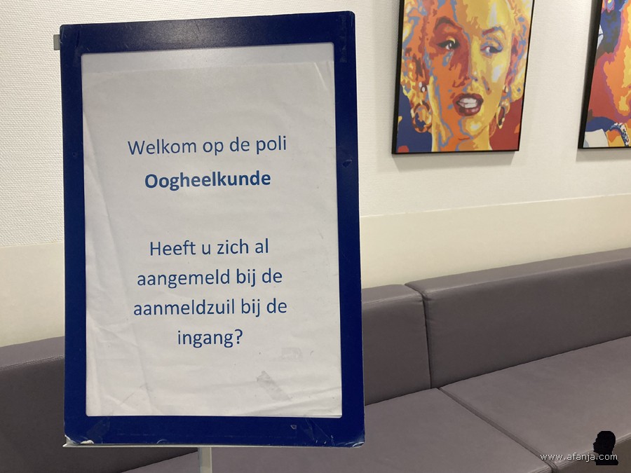 En zo betraden we woensdag weer eens een nieuwe wachtruimte in ziekenhuis Nij Smellinghe, ditmaal bij de poli oogheelkunde. Er hingen weliswaar mooie kleurige platen van oude helden als Elvis Presley, James Dean, Marilyn Monroe en Ray Stevens aan de muren, ik zat toch niet lekker. Mijn oude vriend Johan heeft eens een netvliesloslating gehad, en daar zat ik allerminst op te wachten. Ik vond het dan ook niet erg, dat ik al snel werd geroepen voor een intake en vooronderzoek door een verpleegkundige …