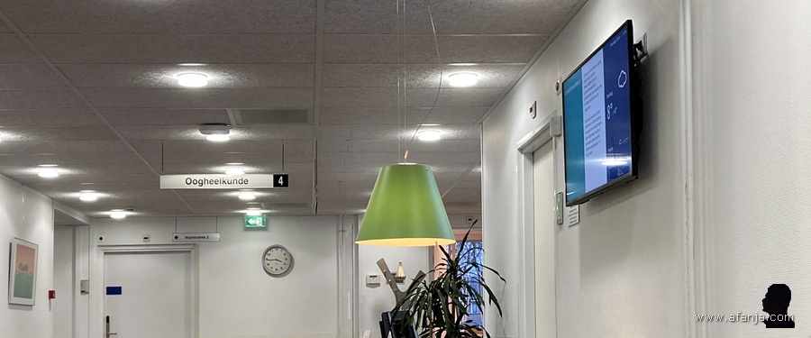 Vorige week verscheen er ineens zo nu en dan een vlekje voor mijn linkeroog. Hing er een haar voor mijn ogen? Nee, want wegvegen bracht geen verandering. Vooral achter de pc was het vervelend en soms zelfs hinderlijk. Omdat het poetsen van zowel leesbril als beeldscherm geen verbetering bracht, hebben we maandag de huisarts maar eens gebeld. Daar kon ik dinsdagmiddag terecht. Nadat de huisarts de situatie in ogenschouw had genomen, vertrouwde hij het niet, temeer omdat ik vertelde dat er intussen 3 vlekjes zaten. Hij dacht niet direct aan een netvliesloslating, maar hij durfde het ook niet uit te sluiten. Daarom nam hij meteen de telefoon ter hand om een afspraak te maken bij een oogarts in het plaatselijke ziekenhuis. Dankzij dat telefoontje van arts tot arts, kon ik woensdagmiddag al bij de oogarts terecht …