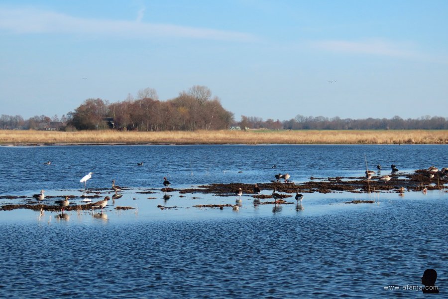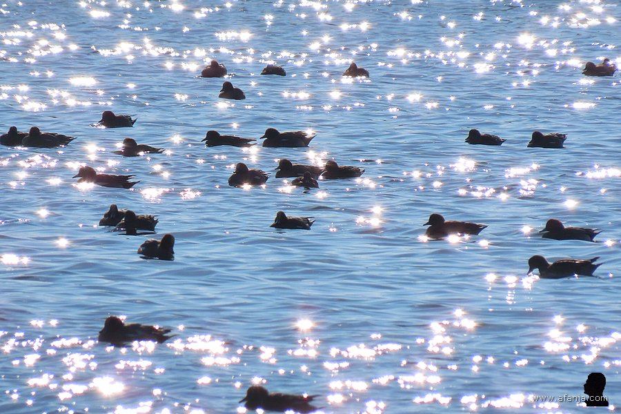 Aan de west- en zuidkant van de kijkhut lagen die dag vele tientallen smienten tussen de fonkelende sterretjes op het water te schitteren …