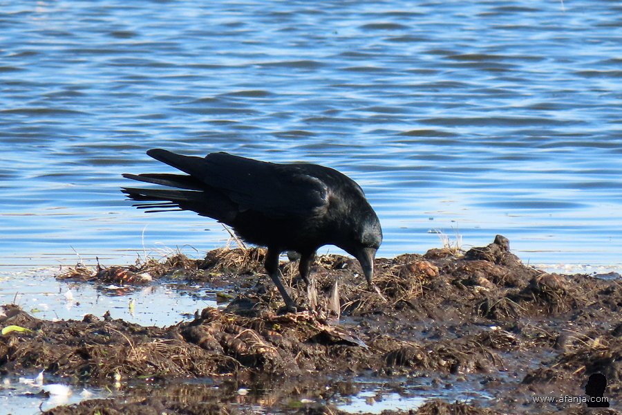 Een roek stond wat aan de restanten van een dode gans te plukken, die daar in oktober 2022 ook al lagen …