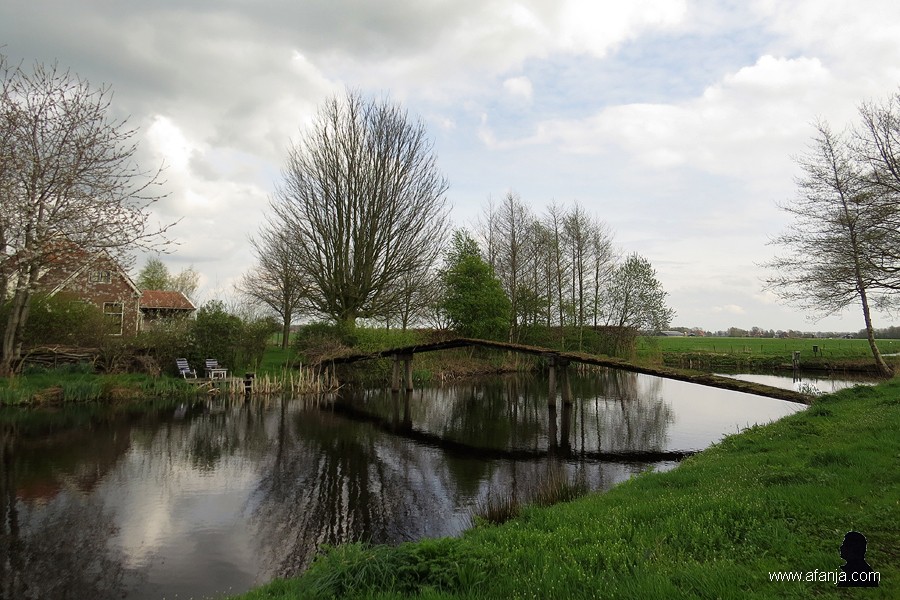 Het is duidelijk, hier en daar ontbreekt eens een plank en van echte draagkracht lijkt ook geen sprake meer te zijn. Zonder enig onderhoud is de natuur aan de winnende hand. Voor de bewoners van het huis aan de overzijde is dat overigens geen probleem, het huis is bereikbaar over een dam aan de zuidzijde van het bruggetje. Daar vandaan zijn de laatste twee foto’s gemaakt …