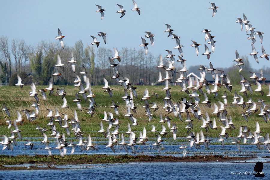 Rond half april liet Jetske en lang gekoesterde wens uitkomen. Van een collega had ze de locatie van een ijsvogelnest gekregen die voor mij ook goed bereikbaar was. Wat heet bereikbaar, we konden ze zelfs gerieflijk vanuit de auto observeren en fotograferen. En het geluk was meteen met ons rond twee uur ’s middags waren man en vrouw ijsvogel zelfs zo vriendelijk om even samen voor ons te poseren. Het spreekt voor zich, dat ik daar de rest van het voorjaar diverse keren heb zitten posten. Omdat het niet ver van de Surhuizumermieden was, kon ik het ook nog eens mooie combineren met het fotograferen van grutto’s, kemphanen en andere weidevogels. Naar aanleiding van de inval van Rusland in Oekraïne sloten Jetske en ik de maand in een grijze, kille sfeer af met een fotokuier op de oude ‘Atoomsite’ bij Havelte… …