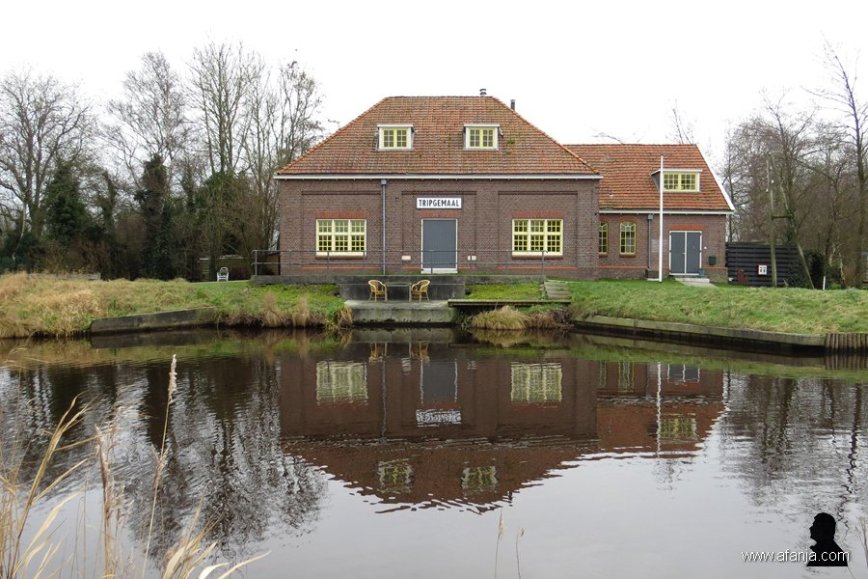 Zoals ik gisteren al schreef, toonde voormalig eigenaar Thom Mercuur (1940 – 2016) in de expositieruimte van het Tripgemaal o.a. gebruiksvoorwerpen, foto’s, boeken, etc. die de turfwinning en de slechte sociale leefomstandigheden in deze streek weer in herinnering brachten. Daarvan is ook vandaag de dag aan de buitenzijde van het gemaal nog wat terug te zien. Daarom ben ik via de verderop gelegen brug naar de overkant van de Heafeart gereden.