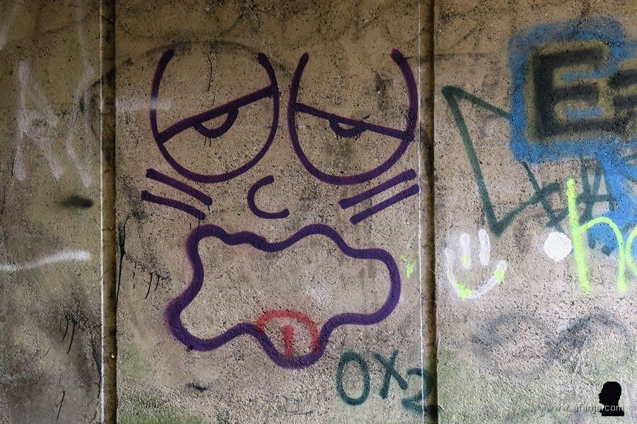 Pas nadat ik KAPKAR / A7-29 X FT van alle kanten had bewonderd en gefotografeerd, viel het me op weg terug naar de auto op, dat het tunneltje vol gekliederd was met lelijke graffiti. Dat moet toch anders kunnen gemeente Smallingerland, die mooie stadspoort staat daar nu bijna letterlijk als een vlag op een modderschip. En ik weet wel dat er vroeger turf en aarde werd vervoerd met skûtsjes, maar neem dat nou hier niet te letterlijk op, gemeente Smallingerland …