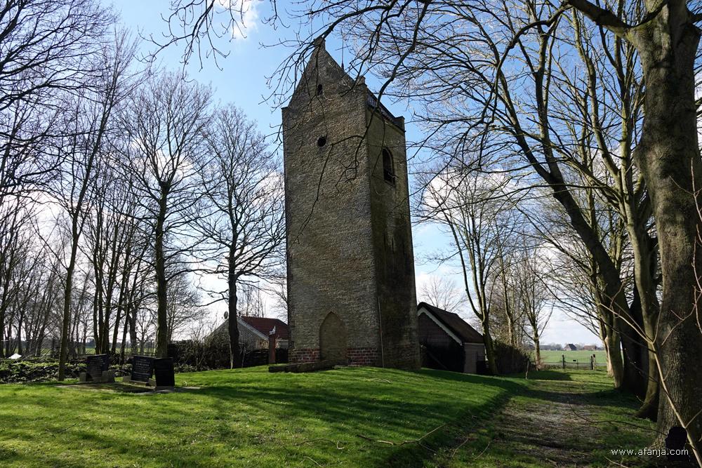 De maquette die hier gisteren te zien was, is een model van de Johannestoren bij Miedum, een buurtschap ten noorden van Leeuwarden. De zadeldaktoren is gebouwd in de 14e of 15e eeuw en staat op een terp. Het kerkschip werd in 1834 gesloopt vanwege vergaande bouwvalligheid …