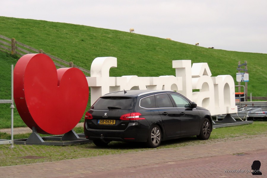 Ik stelde voor om de trap maar te laten voor wat hij was en de dijk gewoon op de bekende plek en de vertrouwde manier te beklimmen. Omdat dat toch altijd weer een hele klim is, namen we halverwege even de tijd om even om ons heen te kijken …