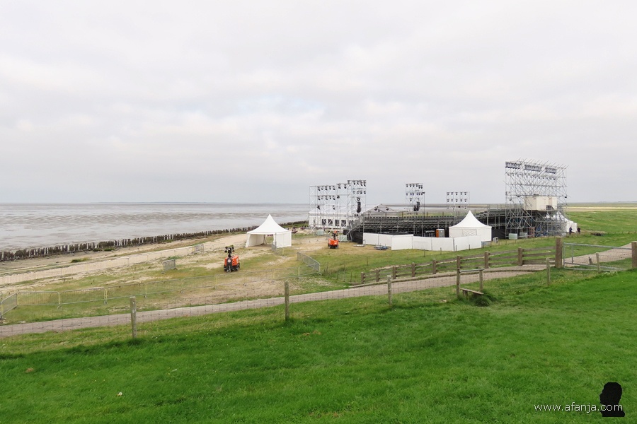 Over de 10 m hoge Waddendijk was een enorme trap gebouwd en aan de voet van de dijk stonden de manshoge letter ‘♥fryslân’. Aan de andere kant van de weg was op het land tussen de twee dorpen Moddergat en Paesens een enorme feesttent opgebouwd …