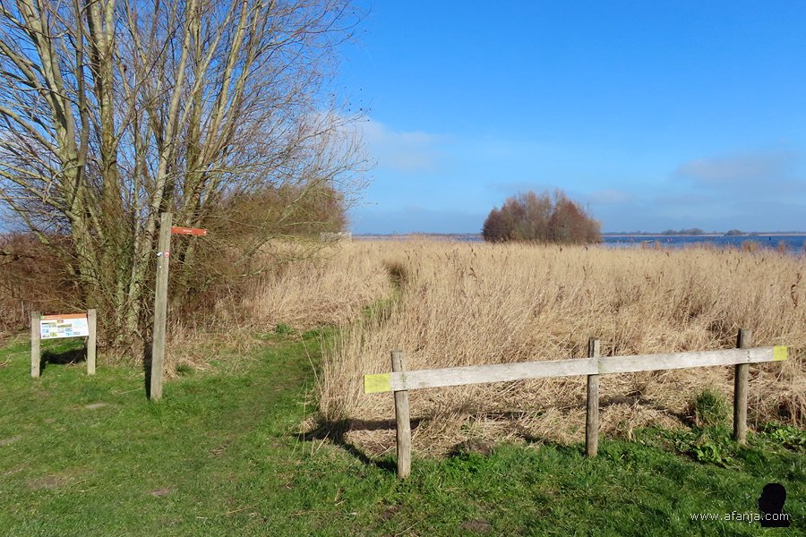 We beklommen het verhoogde uitkijkpunt. Daar werden we welkom geheten door een echte vogelaar met een vogeltelescoop statief en een camera. Hij had daar die ochtend al ruim 3 uur zitten kijken en genieten. Hij had onder andere een paar keer een zeearend en een havik gezien …