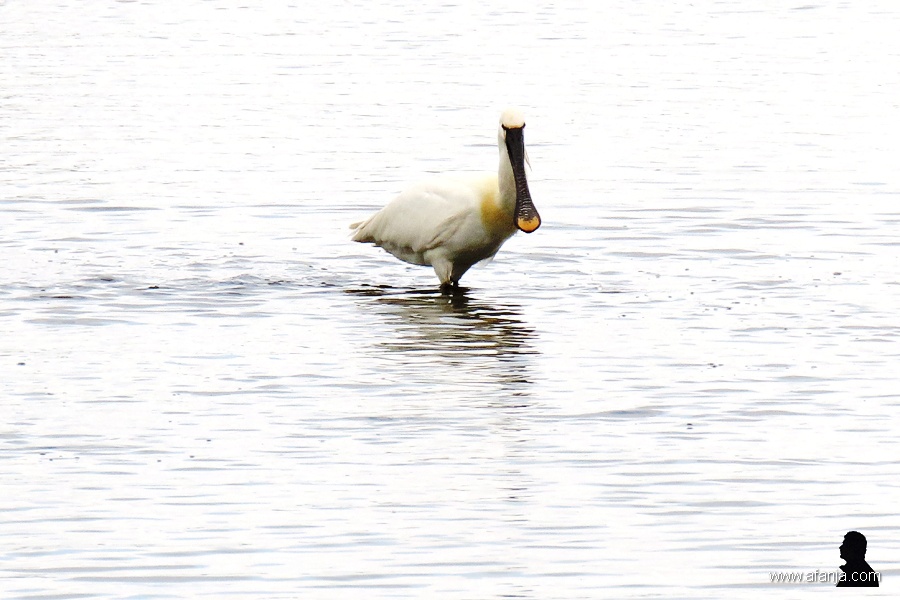 We wisten even niet wat we zagen. De lepelaar maakte er een prachtige show van. Al snel draafde hij min of meer dansend door het water. En niet alleen dat, met ferme vleugelslag zijn evenwicht bewarend, zocht hij ook de diepte op …