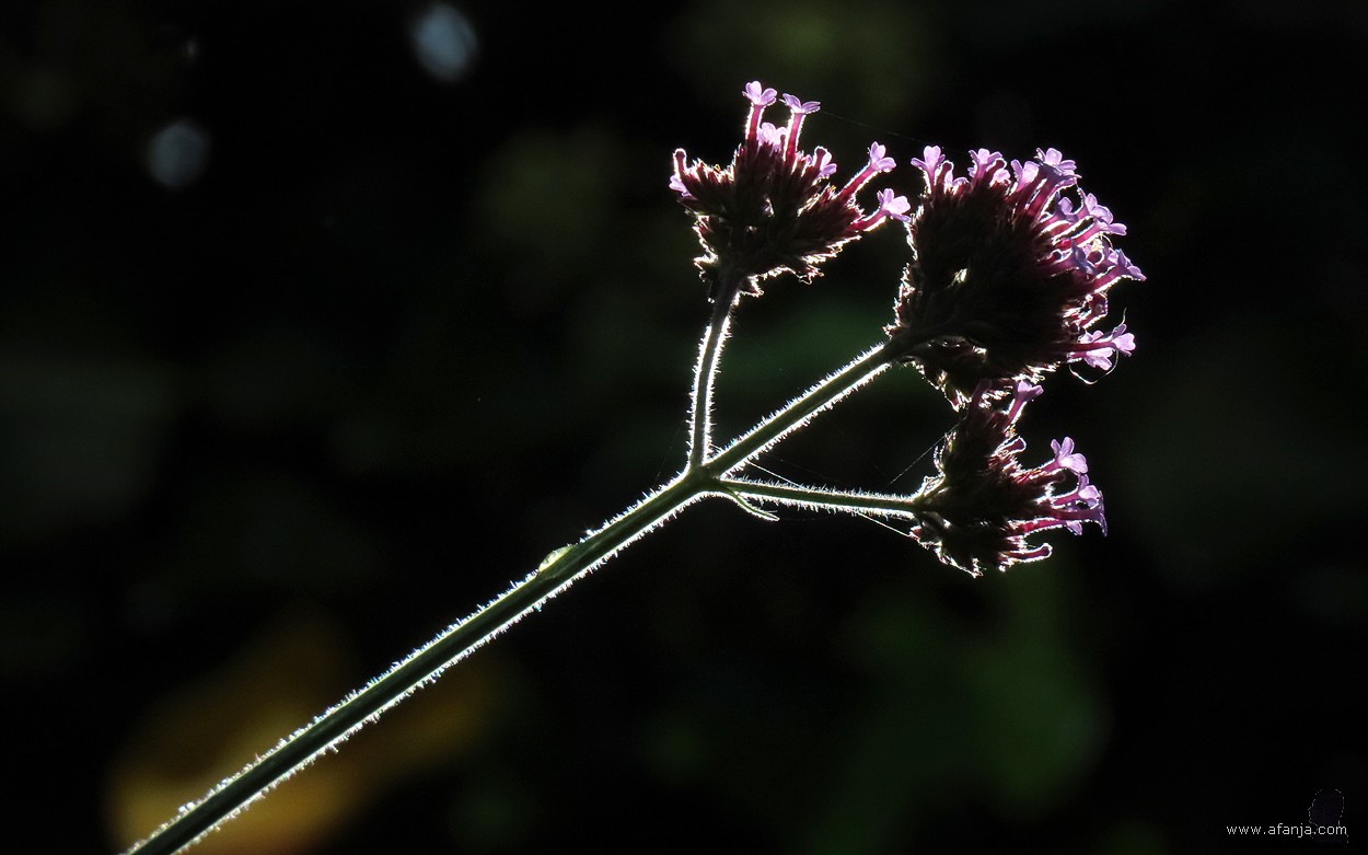 Nauwelijks zichtbaar deinde de lange stengel van de verbena zachtjes op een neer. Hoewel dit al een erg mooi beeld was, hoopte ik stiekem dat er in deze setting nog even een vlinder op de bloemen neer zou strijken. Daar heb ik echter vergeefs op zitten wachten …