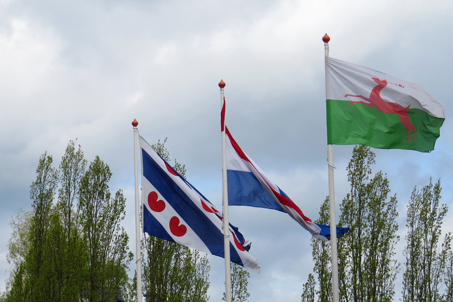 Voor een van de hoofdstukken was de uitgever op zoek naar foto’s van een weiland met ganzen waarin vlaggen of andere afweermiddelen staan. De strekking van het verhaal in het boek is, dat dit niet of weinig helpt. En dat klopt ook met mijn eigen waarneming. Ik had daar in november 2013 een blogje over geschreven: ‘Langs vlaggen en vaandels’. Natuurlijk wilde ik daar wel een foto voor beschikbaar stellen …