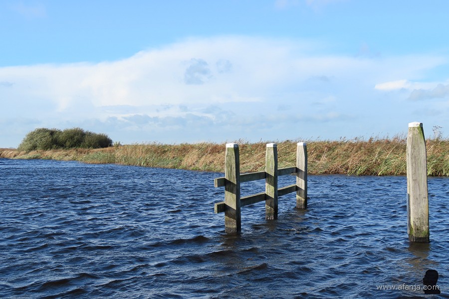 Door een combinatie van factoren was het waterpeil in Fryslân zo hoog dat er overstromingsgevaar dreigde voor een paar dorpen. Daarom zette het waterschap enkele retentiepolders onder water om de druk op de kaden te verminderen. Eén van de onder water gezette polders was It Eilân (foto links). Waar vorig jaar een halve meter water stond, maakte Jetske nu een korte wandeling …
