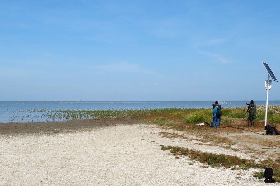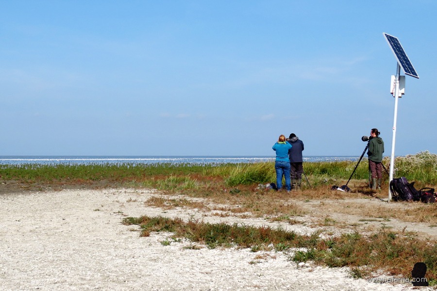 Bij laagwater is er ruimte voor bezoekers. Bij hoogwater hebben de wadvogels de kwelder nodig om uit te rusten. Daarom is er in 2021 door It Fryske Gea en Vogelbescherming Nederland een getijdenwijzer geplaatst aan het begin van de kwelder. Op de eerste twee foto’s hieronder zie je hem in de verte staan …