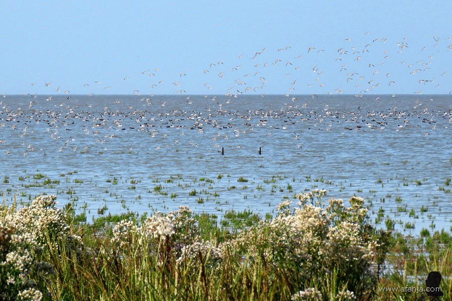 ‘Rust voor Vogels, Ruimte voor mensen’ luidt de ondertitel van het informatiepaneel over ‘Kwelder Westhoek’. Deze kwelder is een onmisbare hoogwatervluchtplaats voor wadvogels aan de Friese Waddenkust. Soorten als bonte strandloper, zilverplevier en rosse grutto kunnen dan niet bij hun voedsel op de ondergelopen slikken en rusten uit op dit hoger gelegen gebied net buiten de dijk …