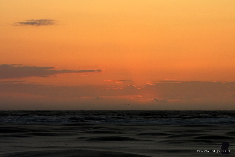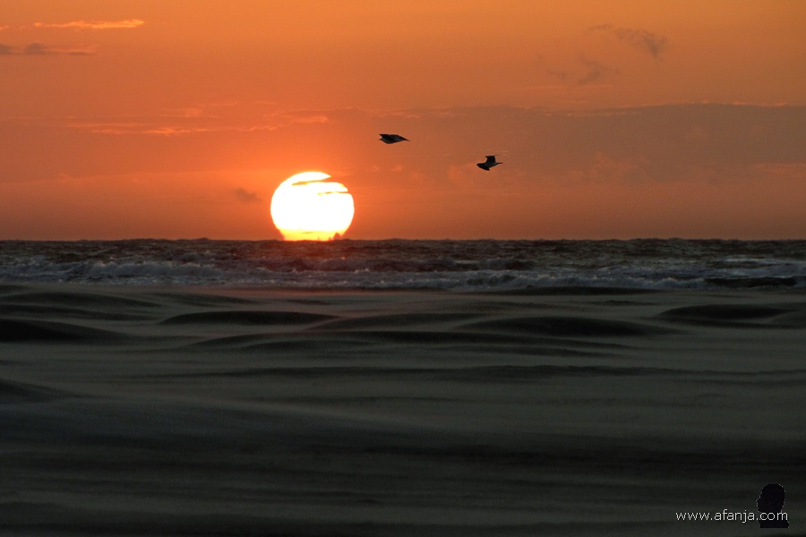 Korte tijd later zat ik precies op tijd klaar om de vliegbewegingen van grote groepen vogels boven het Wad vast te leggen. Prachtig om te zien èn om al die vleugeltjes te horen. Maar ja, wat voor vogels zijn het … De grootste op het water dobberende vogels op de bovenstaande foto zijn bergeenden. De grote groep wit met zwarte vogels die iets verderop op het Wad drijven, zijn waarschijnlijk kluten. En de vogels die in een grote groep boven het water heen en weer vliegen? Dat zouden wel eens bonte strandlopers kunnen zijn, maar wie er meer van weet, mag het zeggen …