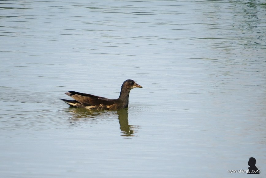 Op zekere dag zwom er een vreemde vogel langs het terras.