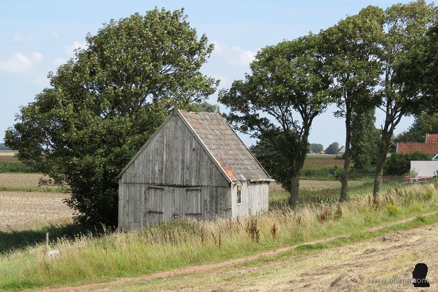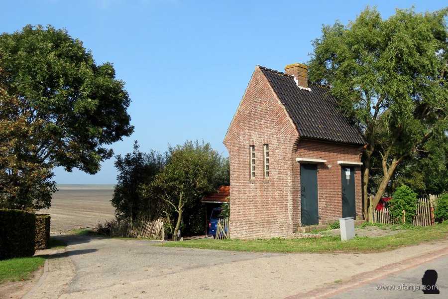 Om de zaken draaiend en het licht brandend te houden, staan er aan de Oudebildtdijk t.b.v. de elektriciteitsvoorziening ook nog een paar transformatorhuisje. We vonden er drie, allemaal van hetzelfde ontwerp, maar dit huisje met nr. 1166 en op de achtergrond nog een stukje van de Waddenzeedijk bood het mooiste plaatje. De foto’s zijn naar je onderweg, Sjoerd …