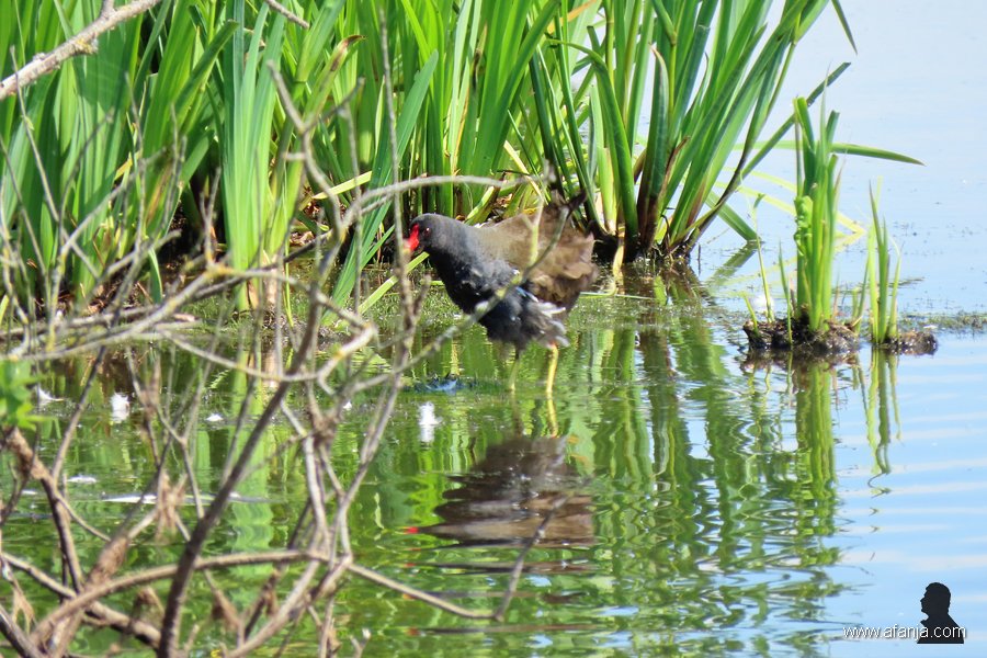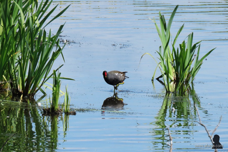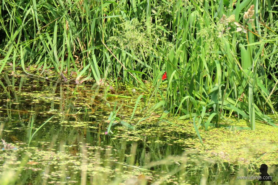 Even later zat ik in de hut. En het moet gezegd, ik zat er goed, maar na enige tijd werd het toch wel saai. Er gebeurde vrijwel niets. Gelukkig had ik drie weken geleden meer geluk, toen liepen er vlak voor de hut drie waterhoentjes over de bladeren van de waterlelie en de gele plomp. Kijk eens naar die enorme poten. Ik vond het heel vermakelijk …