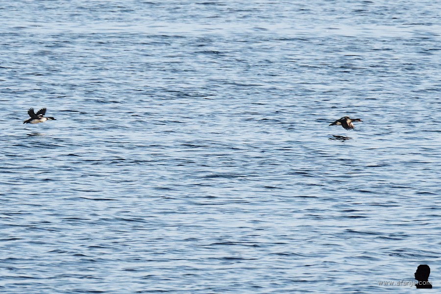 Gisteren bleef het stil rond de vogelkijkhut. Er vlogen eens een paar eenden voorbij en er dook een grote stern buiten het bereik van mijn camera in het water. Dat was het wel zo ongeveer. Ik moest me tevreden stellen met een foto van een paar aalscholvers, die de plek hadden ingenomen van de zeearenden in de laatste boom van het eilandje …