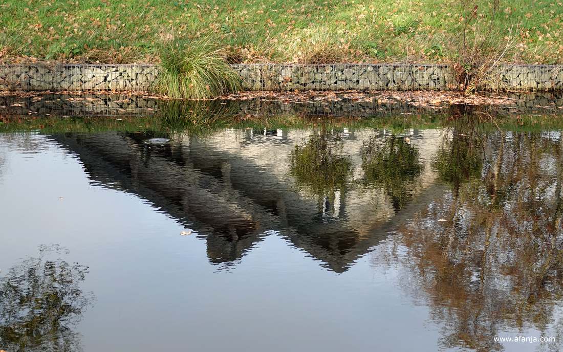 Begin maart ronkten hier nog graafmachines en denderden er vrachtwagens door het ruwe terrein. Intussen is de rust in een deel van het gebied teruggekeerd. De bomen die de kaalslag hebben overleefd, worden we nu mooi weerspiegeld in het stille weerribbenwater …