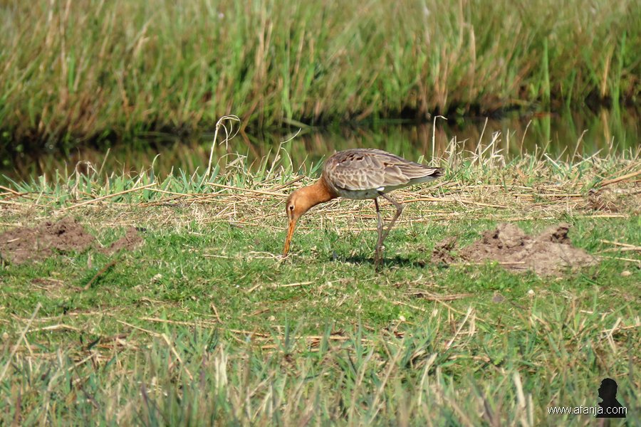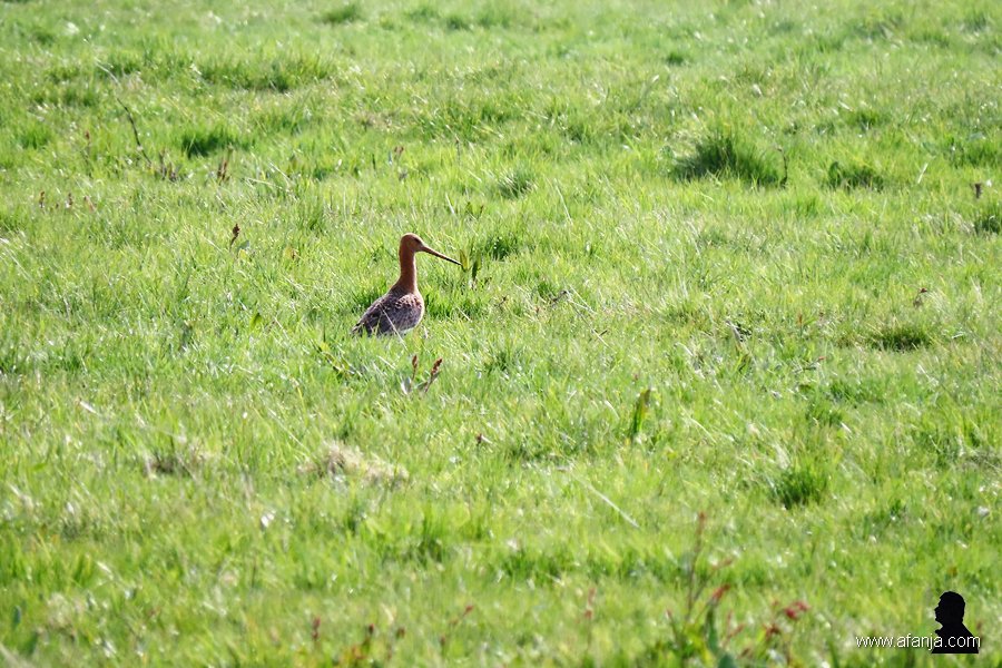 Ieder aan een kant van hun kuiken hielden de ouders de omgeving scherp in de gaten. Lang duurde de show niet, al snel leidden pa en ma hun kuiken weer naar het lange gras. Hopelijk redt dit kuiken het om volwassen te worden, want de kuikenoverleving van grutto’s moet omhoog …
