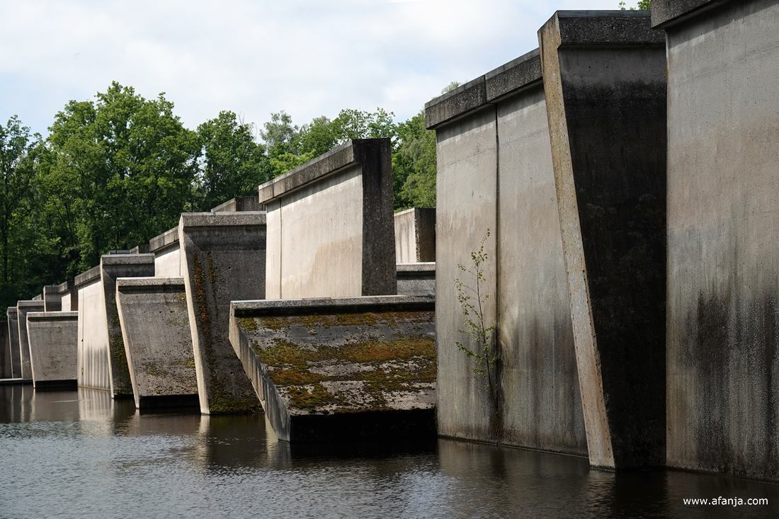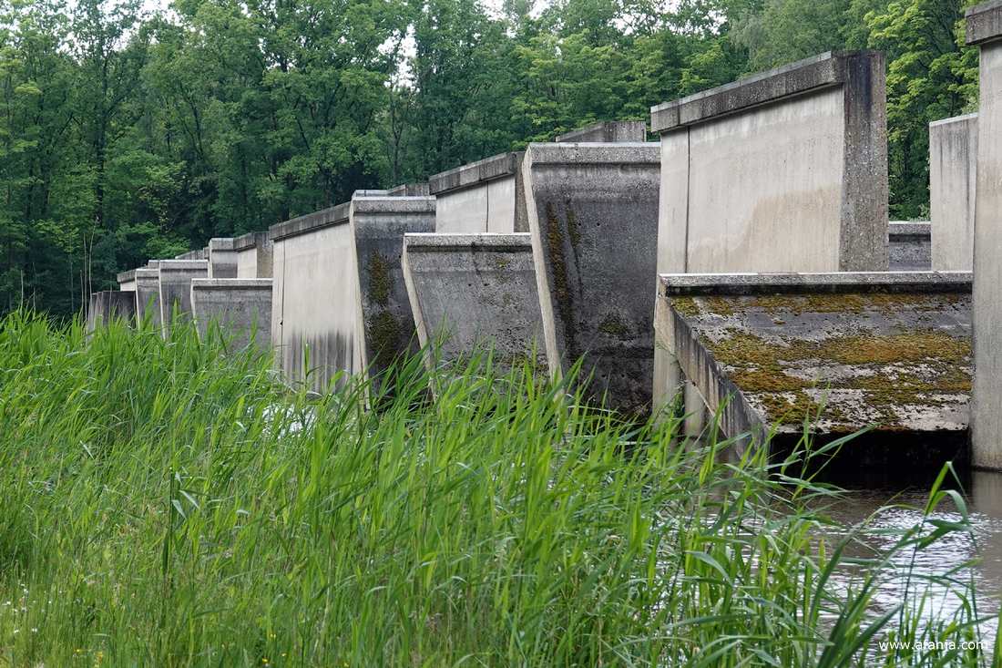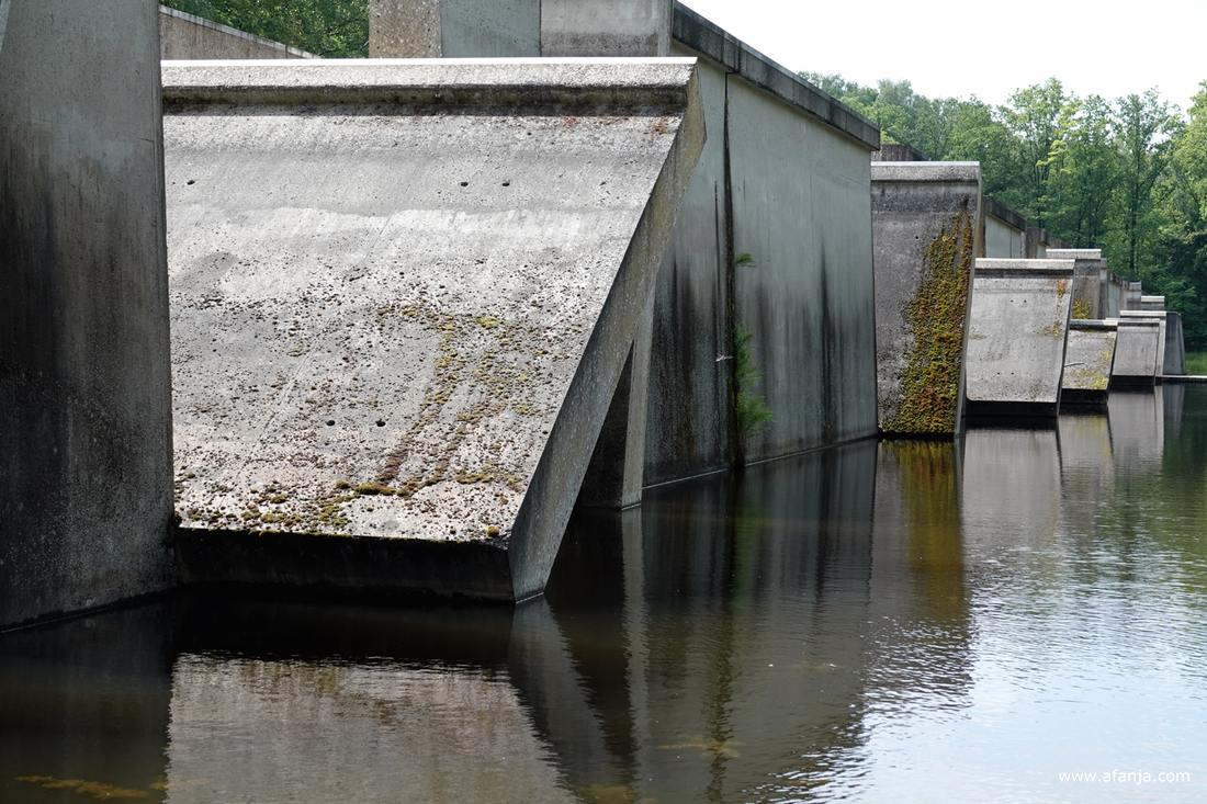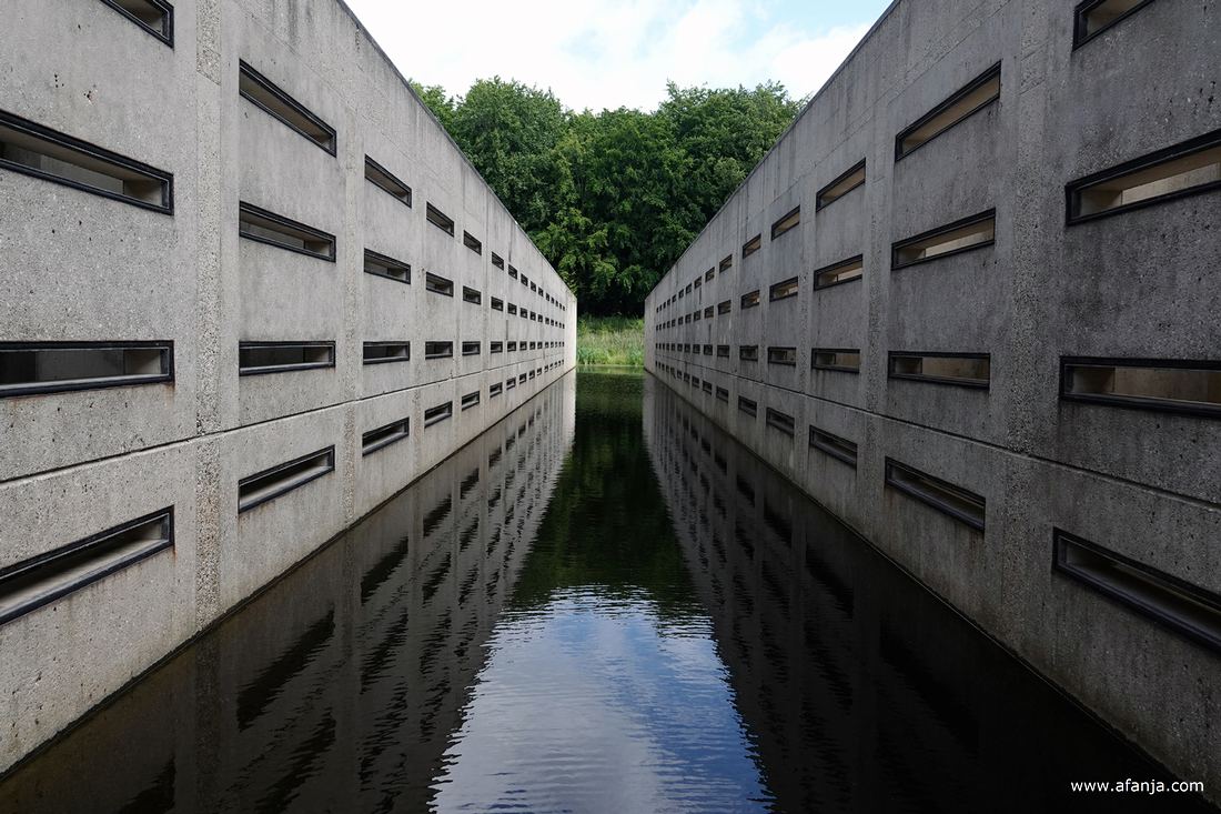 Eén van de meest opvallende bouwwerken in het Waterloopbos is de Deltagoot. Deze enorme betonnen bak is in 1980 gebouwd om de Oosterscheldekering te testen. Hij is 240 meter lang, 5 meter breed en 7 meter diep. Dankzij de inspanningen van Natuurmonumenten kreeg dit imposante bouwwerk een nieuwe bestemming. Dit was het eerste bouwwerk op onze route …