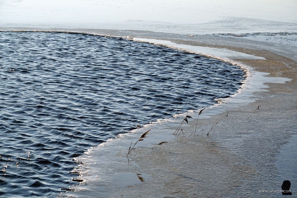 Maar een klein stukje verder lag nog steeds dat grote gapende wind wak, waarin wind en water ook nu nog vrij spel hadden. Nee, dit stuk konden de rest van week gevoeglijk afschrijven als schaatsbaan …