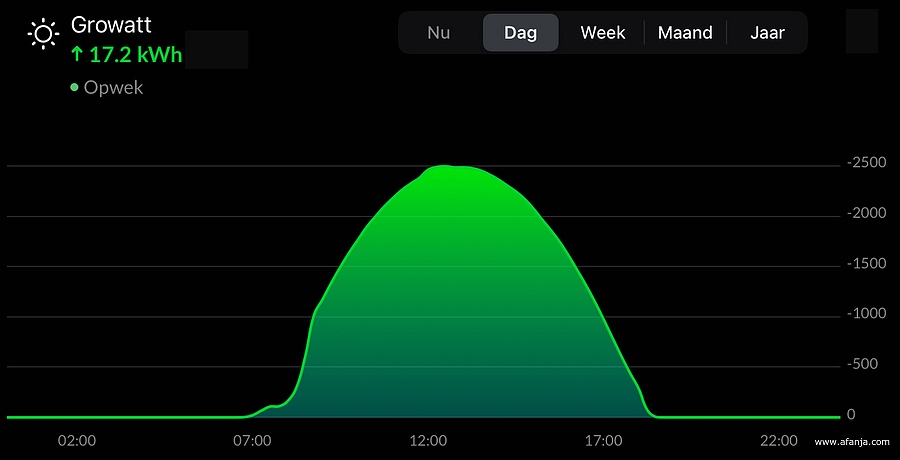 Hieronder de opgewekte zonne-energie van onze 9 zonnepanelen …