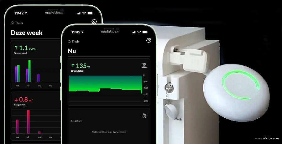 Het is een plug-in batterij. Om te beginnen steek je een z.g. P1-meter in de daarvoor bestemde poort op je slimme meterkast. Met een app maak je vervolgens contact met de P1-meter. Hiermee kun je alle gegevens van je stroom- en gasverbruik bekijken zoals in de grafieken hieronder. Op het moment dat je vervolgens de stekker van je thuisbatterij op een willekeurige plek in huis in een stopcontact doet, installeert de batterij zichzelf en maakt hij contact met de P1-meter. En als blijkt dat je te weinig hebt aan één thuisbatterij, dan kun je de tweede net zo makkelijk installeren …