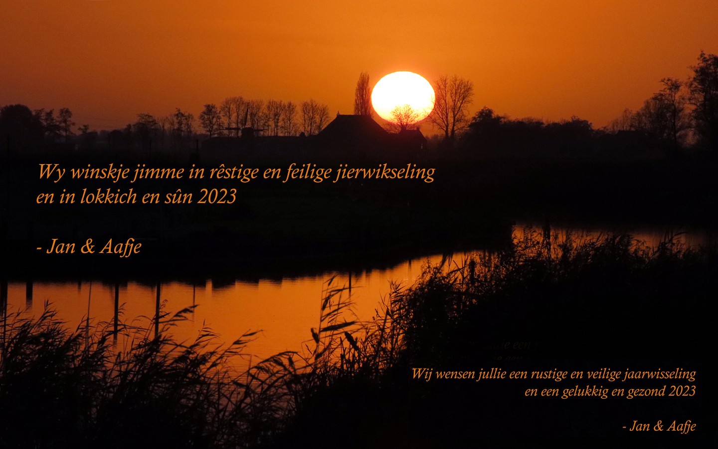 Ik sluit het jaar af met één van de weinige zonsondergangen die ik dit jaar heb gefotografeerd. Even een moment van rust om terug te blikken op de dag, of zoals vandaag op het afgelopen jaar. Het was weer een raar jaar, dachten we eindelijk af te zijn van Corona, stort Poetin bakken vol ellende uit over Europa en de wereld. En alsof dat niet genoeg is, lijkt Corona vanuit China op weg om met mogelijke nieuwe varianten nog eens over de wereld te trekken.