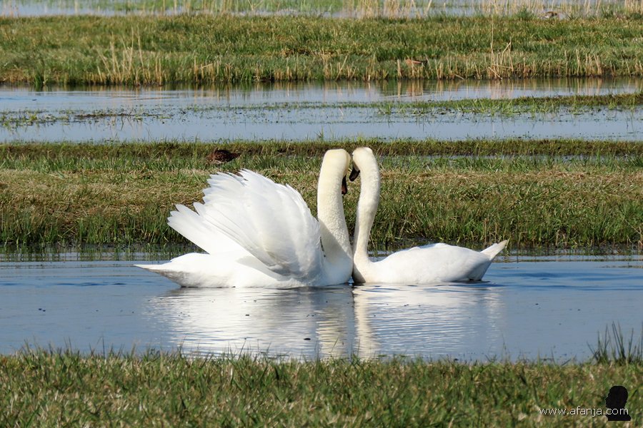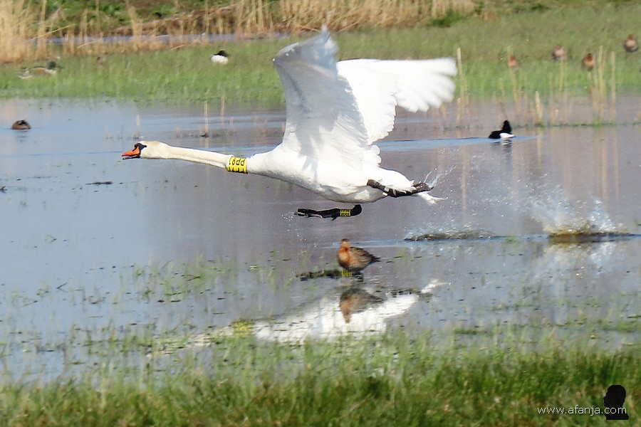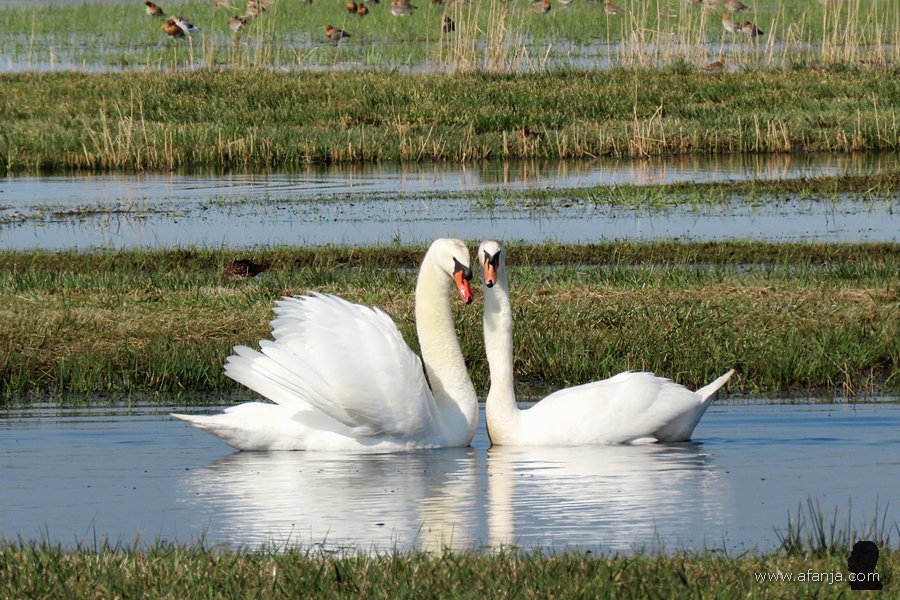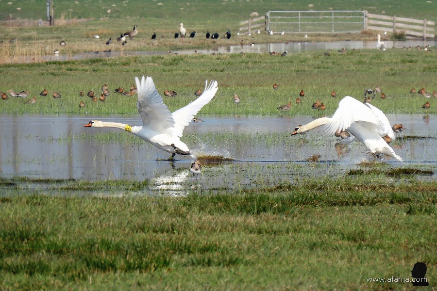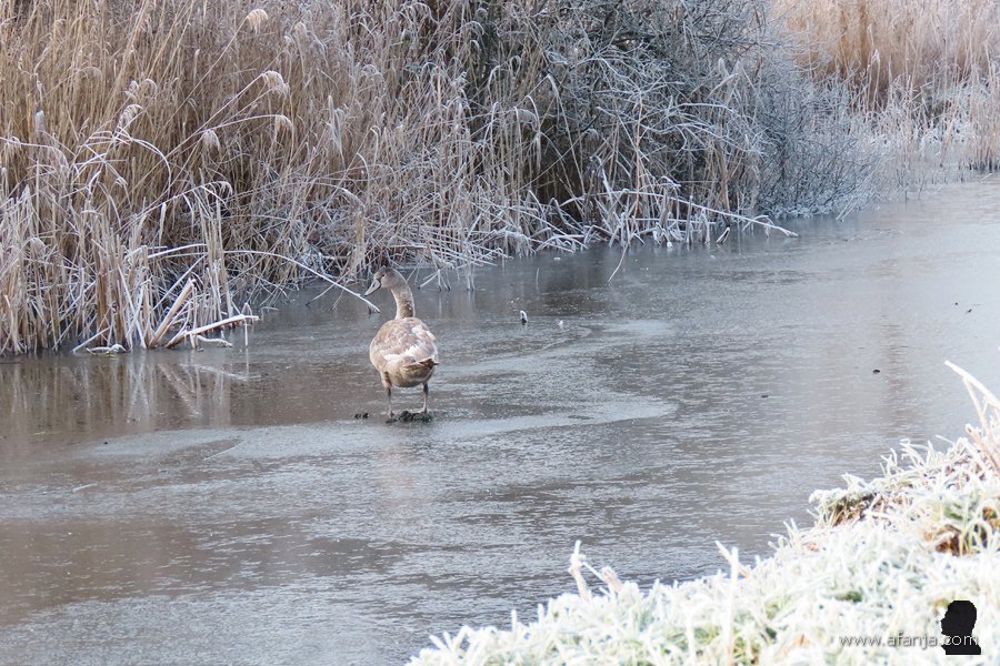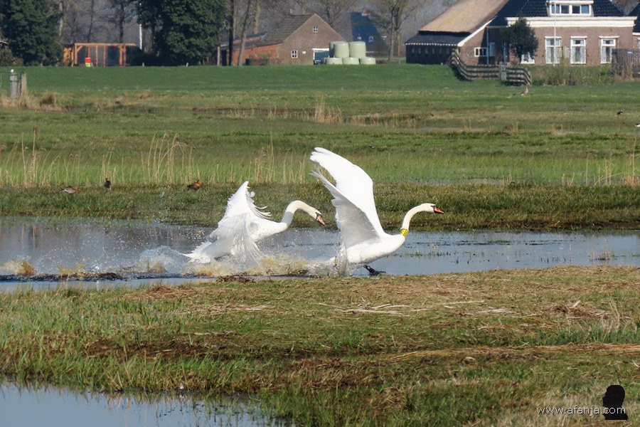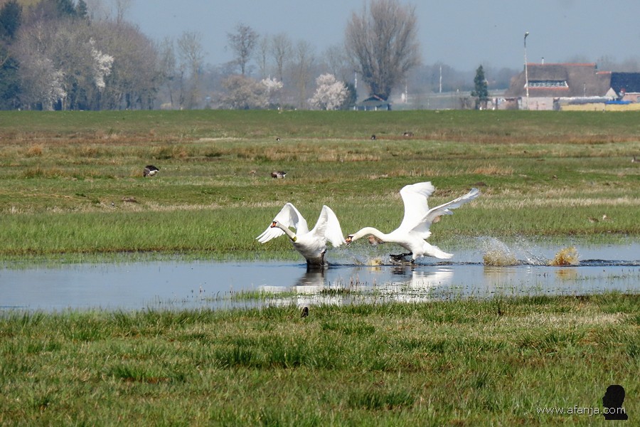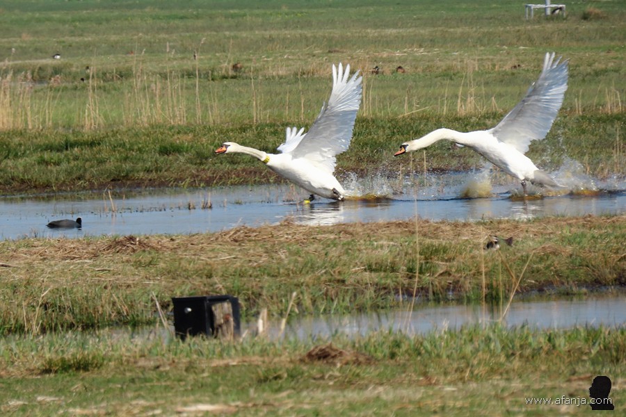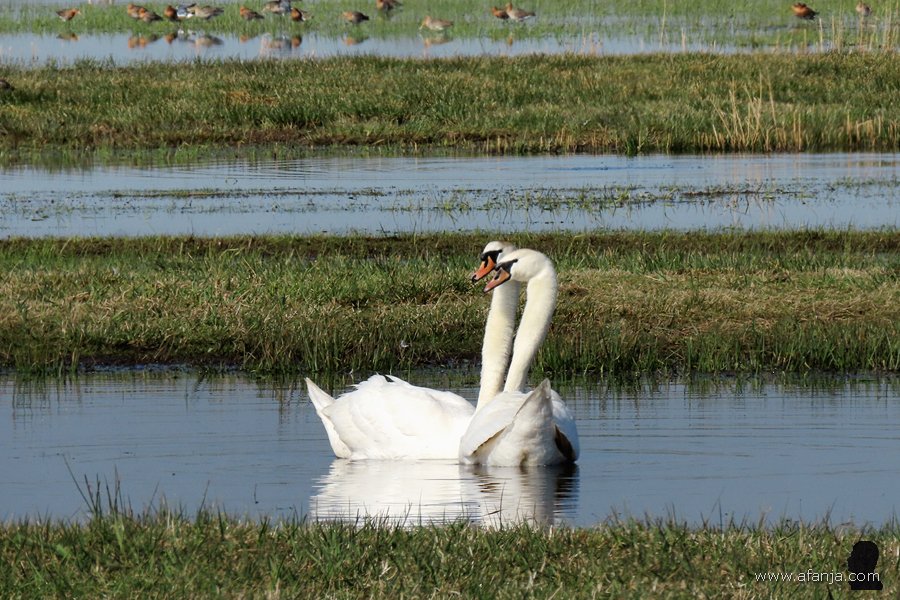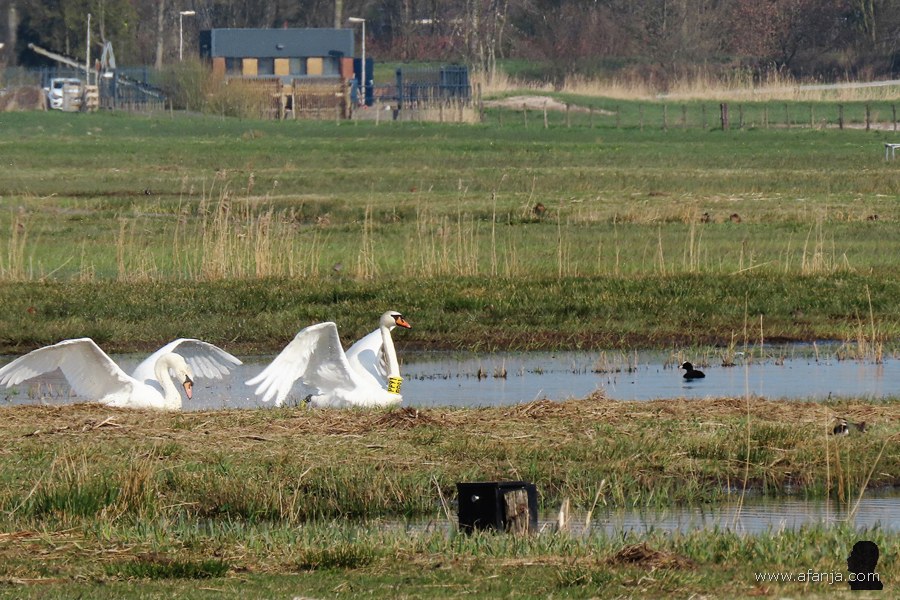 In Polen lieten ze daarom hun commercieel waardeloze ‘mutantjes’ los in de vrije natuur, zodat deze vogels de kans kregen om te kruisen met de oude vertrouwde Europese knobbelzwaan. Beide kleurvormen zijn inmiddels verwilderd en met elkaar vermengd, maar de verschillen kun je nog steeds goed zien. Met name bij de jongen is dat duidelijk. En komt het dat er nu dus een paar Poolse zwanen met een spierwit jong in de Wieden rondzwemmen …